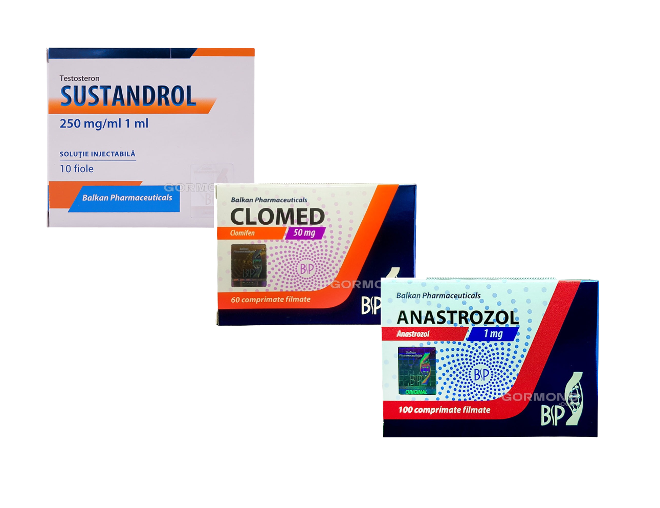 | Недели | Sustanone | Anastrozole | Clomed (ПКТ) |