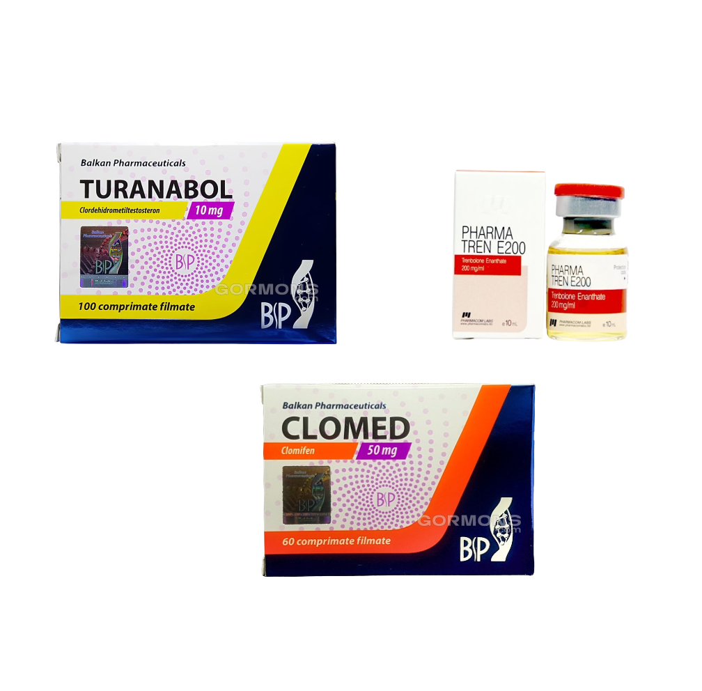 Препараты, входящие в курс: turinabol (200 таб.), trenbolone enanthate (1 флакон), clomed (40 таб.)